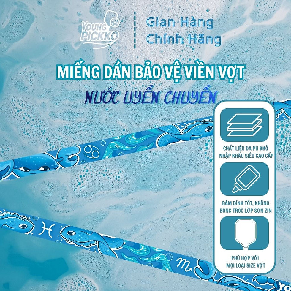 Miếng dán viền vợt YoungPickko Vietnamese Street được làm từ da PU cao cấp mềm mại, bền bỉ, kích thước 80×2,5 cm ôm khít mọi loại viền vợt pickleball; họa tiết đường phố vẽ tay ngẫu hứng với hình ảnh quen thuộc chỉ có đường phố Việt Nam mới có, vừa bảo vệ viền khỏi trầy xước, va đập, vừa tôn lên phong cách trẻ trung, sáng tạo mỗi khi bạn ra sân.